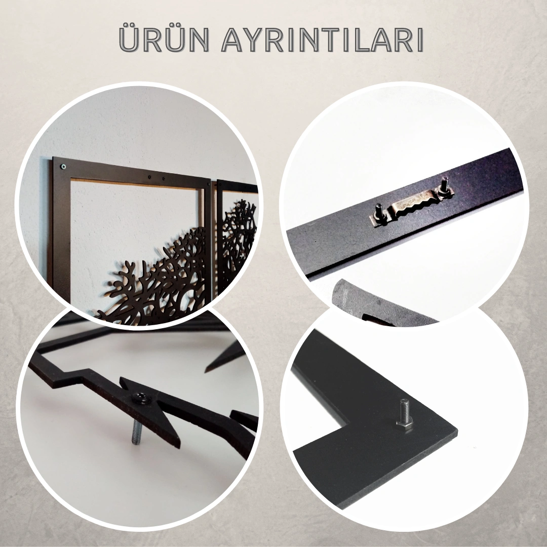 Ürün üzerinde bulunan vidalar ile çivi vasıtasıyla duvara asılır, böylece duvardan 1,5 cm önde durarak 3 Boyutlu bir görünüm oluşur.