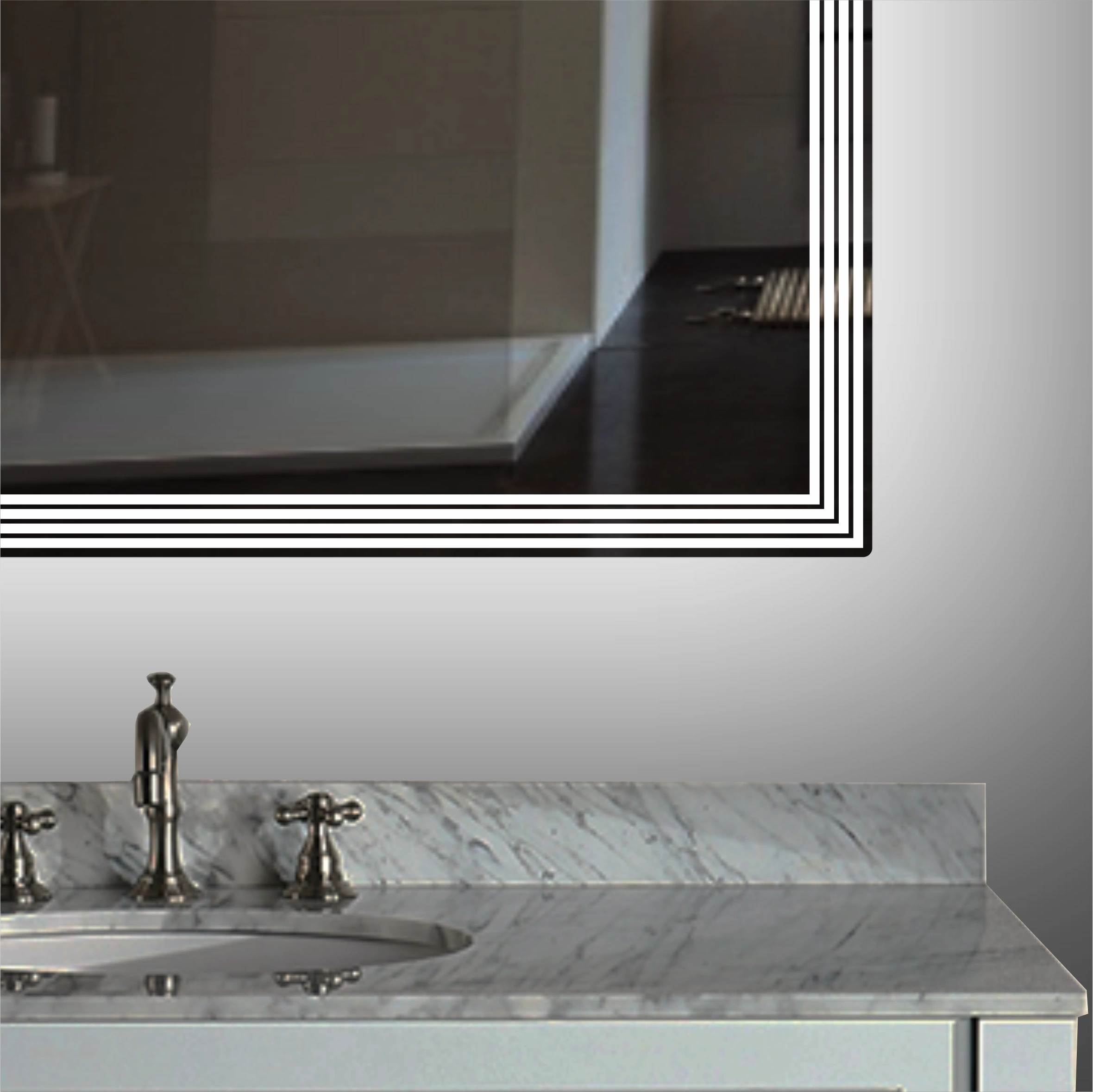 Additionally, if there is an existing electrical connection drawn at the back of the mirror (like a sconce), the transparent cable can be canceled from the marked place and the LED can be directly connected to the mains electricity without needing any adapter or transformer. The on-off can easily be controlled with a switch located at the room entrance.