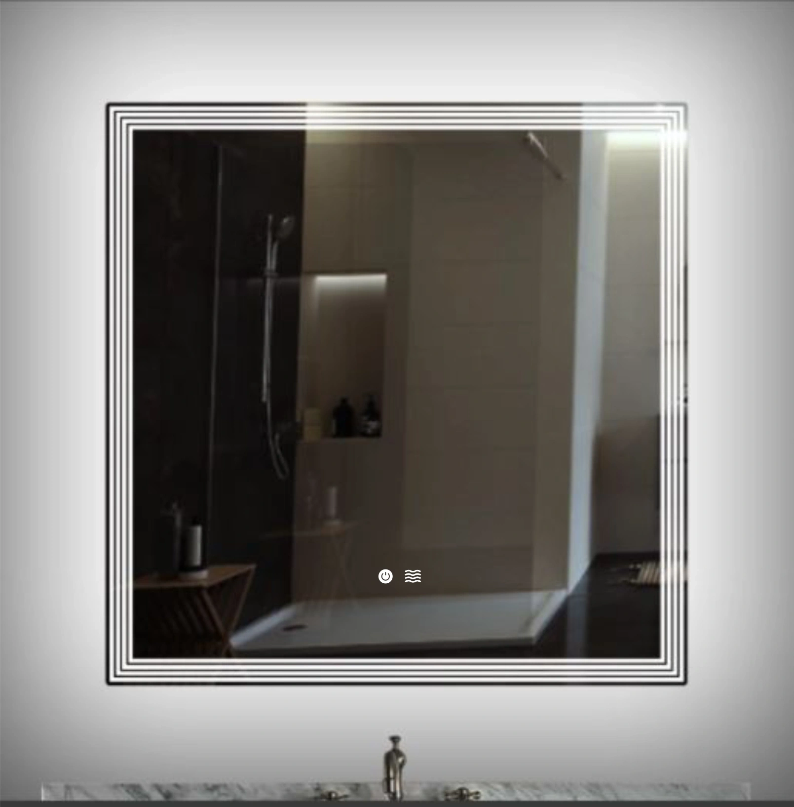 The LED operates with 220 V electricity. Thanks to the transparent cable plug suitable for 220 V electricity mounted at the back of the mirror, it can be used instantly by plugging into a socket next to the mirror. The on-off switch attached to the transparent plug allows the LED light to be easily turned on and off.