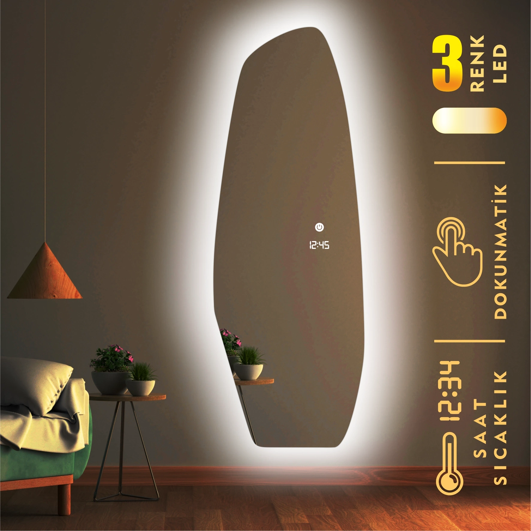 The LED operates with 220 V electricity. Thanks to the transparent cable plug suitable for 220 V electricity, which is mounted on the back of the mirror, it can instantly be used by plugging it into an outlet next to the mirror. The LED light can be easily turned on and off with the on/off switch attached to the transparent plug.