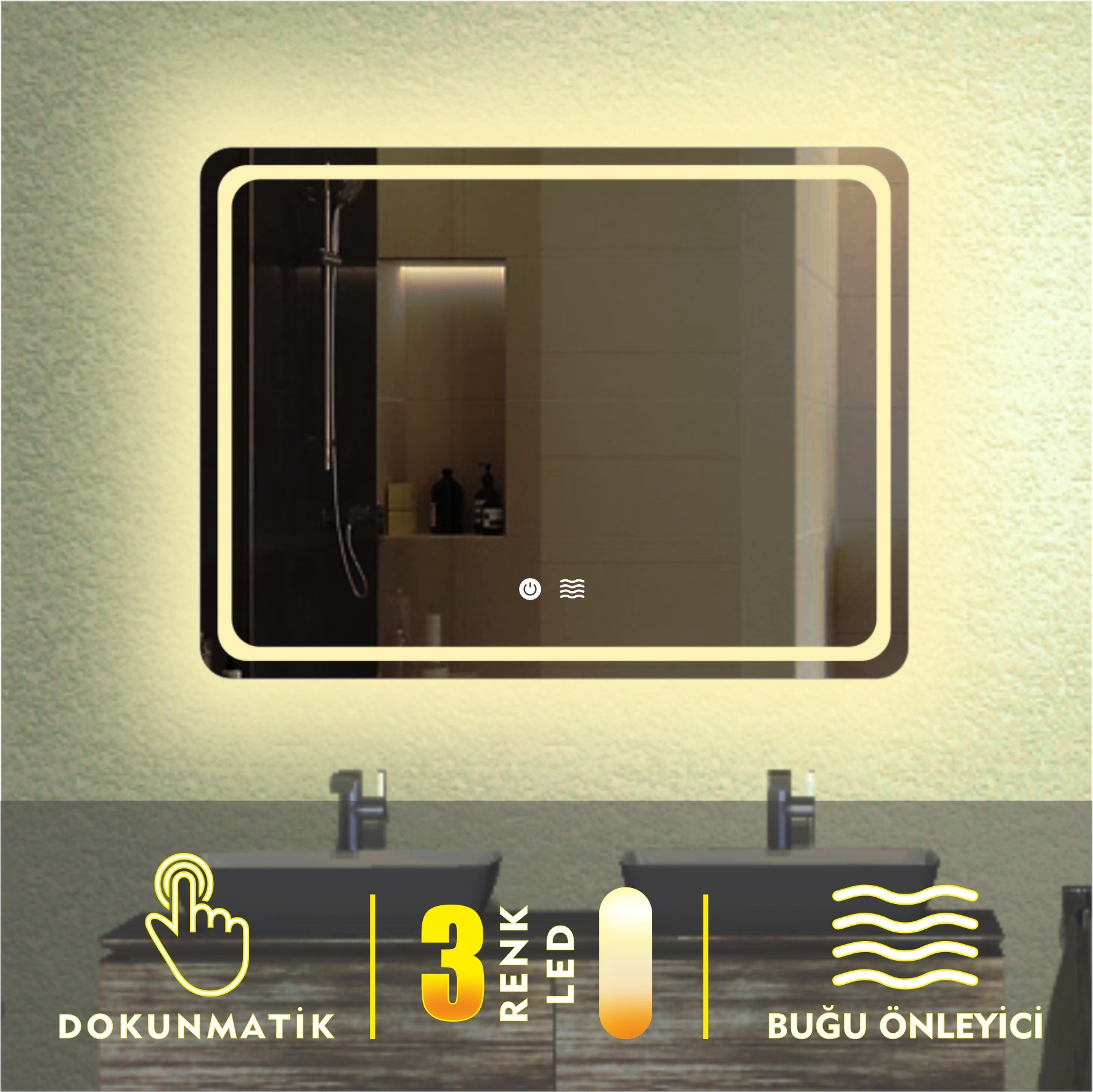 Model - 4 ; Dokunmatik aç kapa kontrol vardır.Üç renk ışık yanmaktadır. (Amber, Beyaz ve Gün Işığı). Dokunmatik butonuna kısa dokunuşlar ile renk değiştirilir. Dokunmatik butonuna basılı tutularak ışık gücü ayarlanabilir. Buğu Önleyici Rezistans bulunmaktadır.Tek dokunuşla Buğu Önleyici aktif edilir. Banyo içerisinde oluşan buğu kısa süre içerisinde çözülür ve net bir görüntü elde edilir.