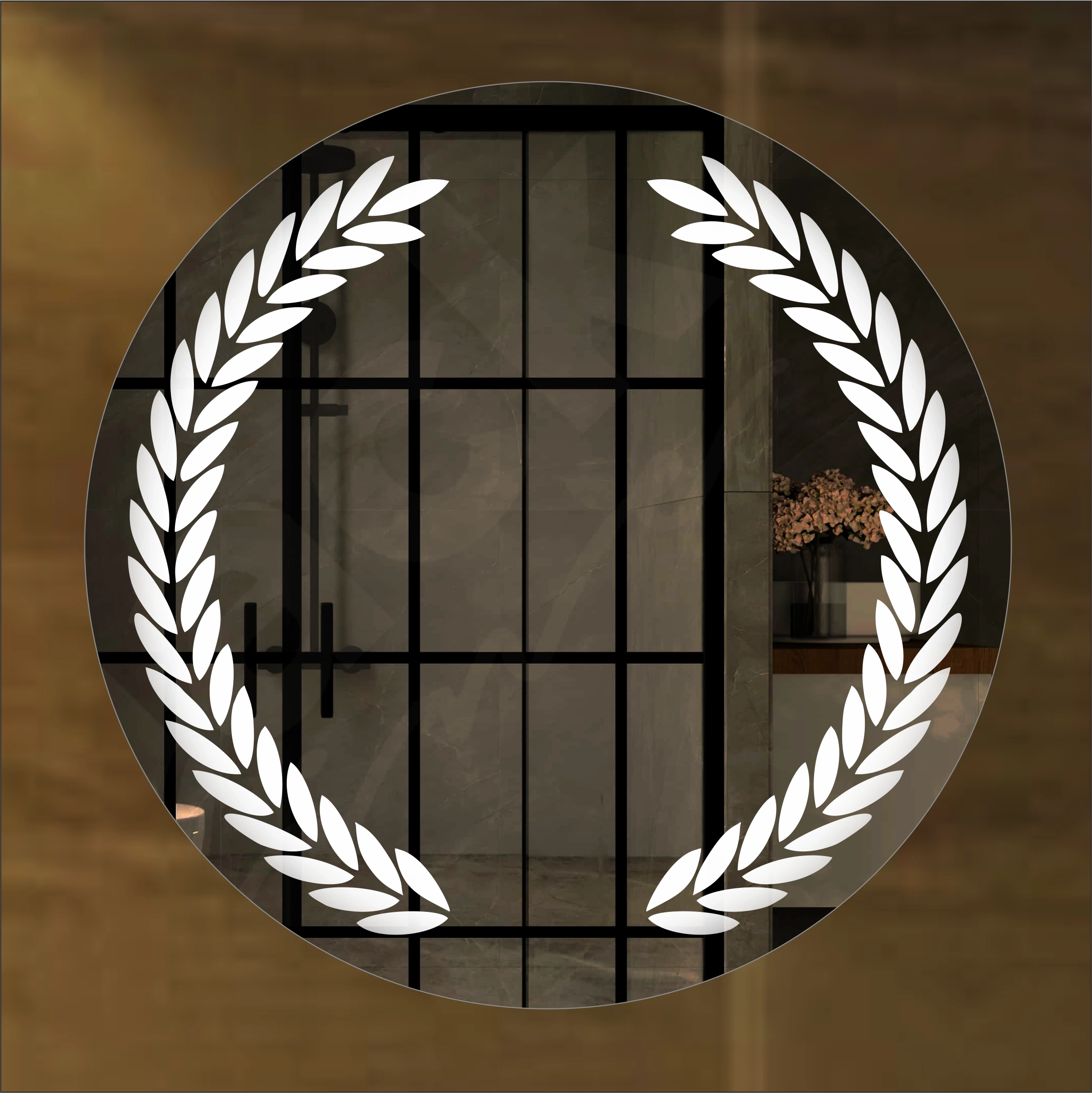 Ayna üzerindeki kumlama lazer ile oluşturulmuştur.