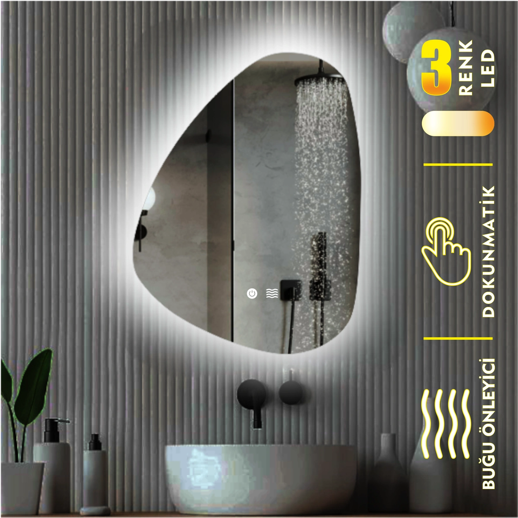 3 RENK IŞIK AYARLI DOKUNMATİK BUĞU ÖNLEYİCİ ASİMETRİK LEDLİ AYNA