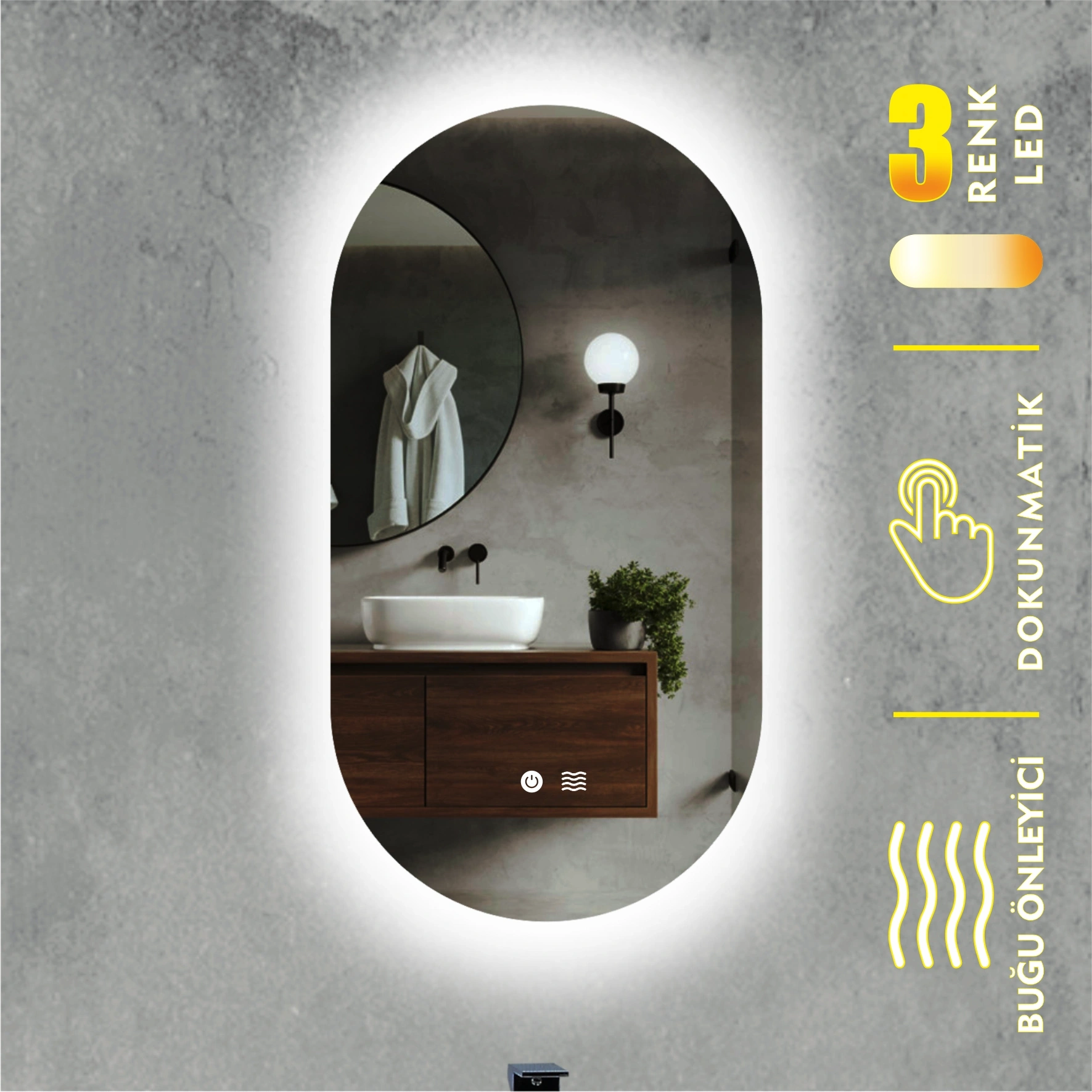 Model - 4 ; Dokunmatik aç kapa kontrol vardır.Üç renk ışık yanmaktadır. (Amber, Beyaz ve Gün Işığı). Dokunmatik butonuna kısa dokunuşlar ile renk değiştirilir. Dokunmatik butonuna basılı tutularak ışık gücü ayarlanabilir. Buğu Önleyici Rezistans bulunmaktadır.Tek dokunuşla Buğu Önleyici aktif edilir. Banyo içerisinde oluşan buğu kısa süre içerisinde çözülür ve net bir görüntü elde edilir.